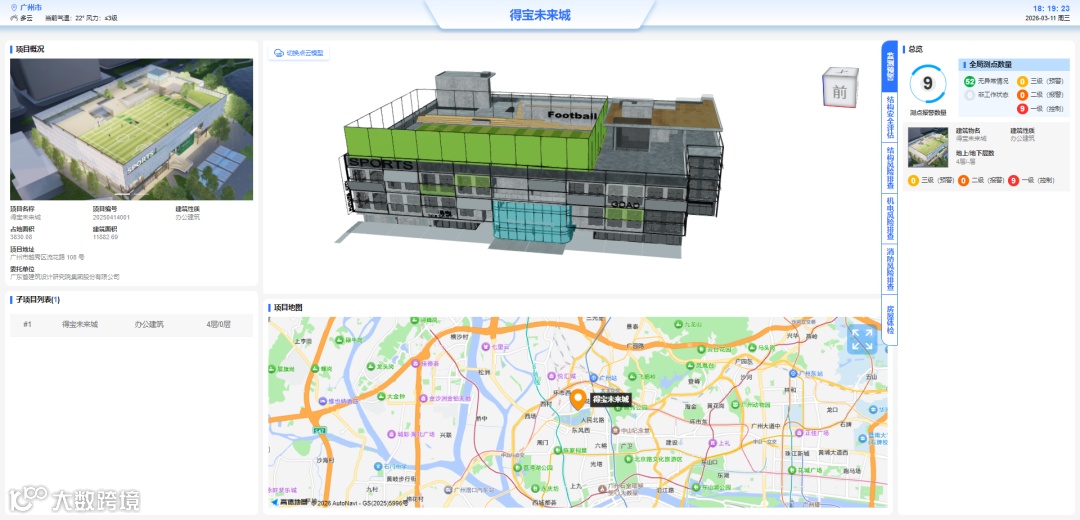 在得宝未来城的运维后台,一组组显示建筑健康程度的即时数据不断跳动——这里是整座建筑的“体检中心”。它所守护的建筑,前身是流花湖畔空置了十余年的得宝保龄球馆。2024年,省建院首次以“投建营”一体化的模式,接过了这幢老建筑的旧钥匙,为其打开一扇通向未来的大门。