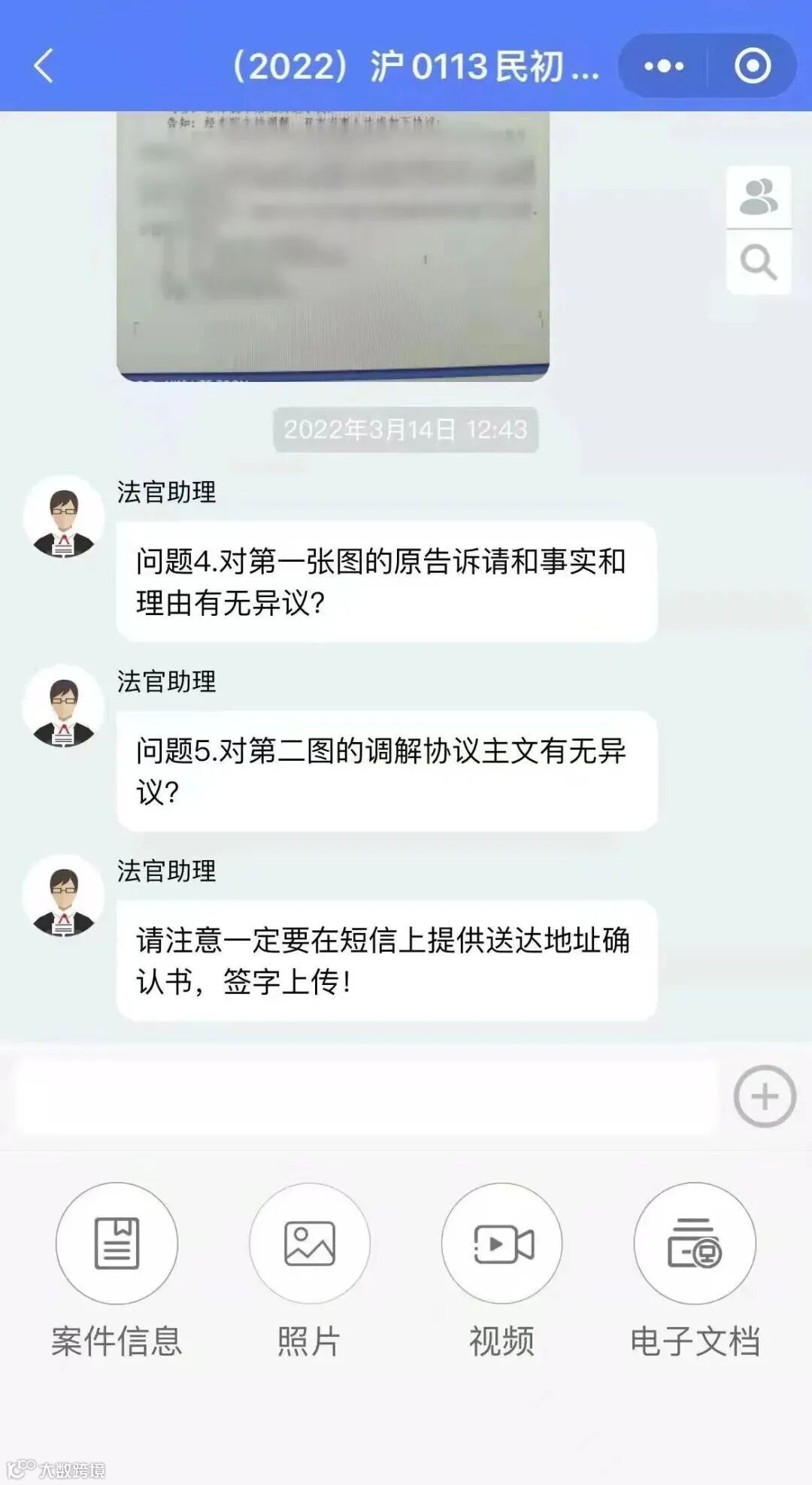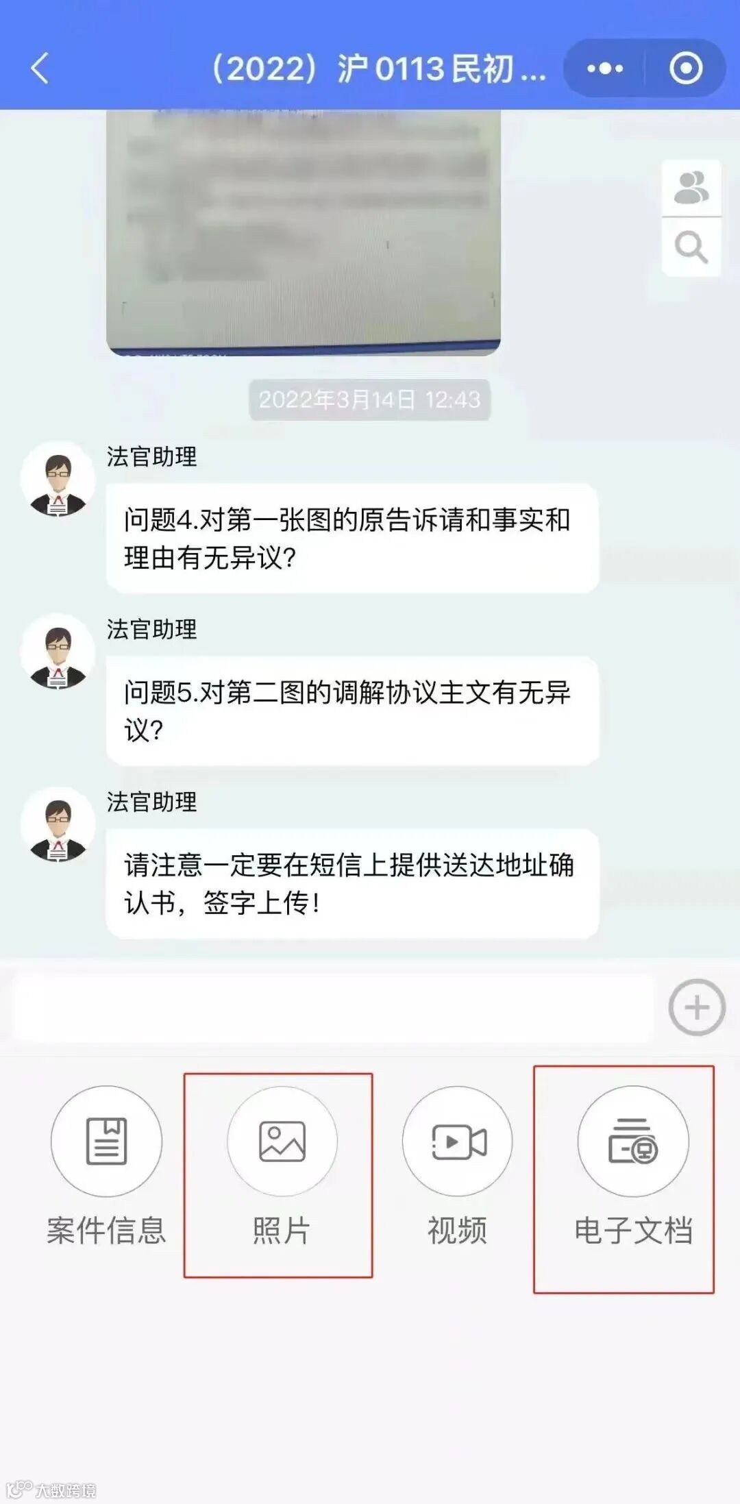 如果想在线递交证据,直接拍照或电子文档上传,和微信聊天一样。