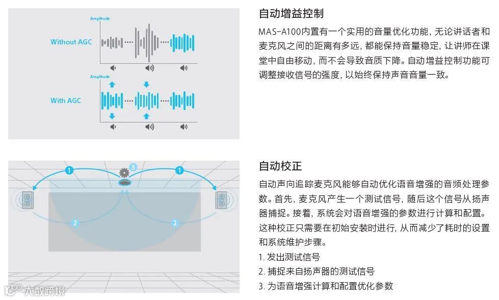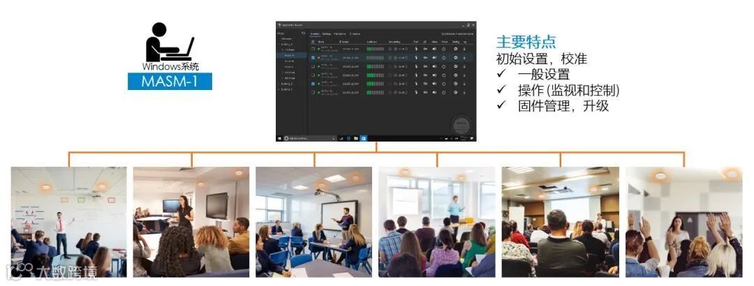 自动校准功能简化了系统调试过程,还可以使用免费的MASM-1管理软件通过网络轻松地调整设置。集中管理方式简化了设置过程,用户也无需时刻监测电池电量,MAS-A100堪称是一种便捷的教室音频解决方案。