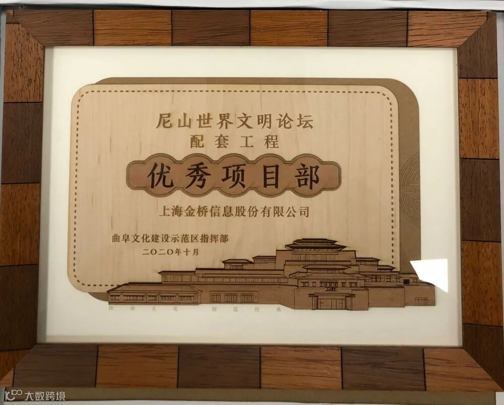 近日,上海金桥信息股份有限公司在尼山世界文明论坛配套提升工程参建、设计单位表彰大会上荣获“优秀项目部”称号。尼山讲堂项目是尼山世界文明论坛配套提升工程、市重点工程。“优秀项目部”的荣誉,是对金桥出品的肯定和信任。