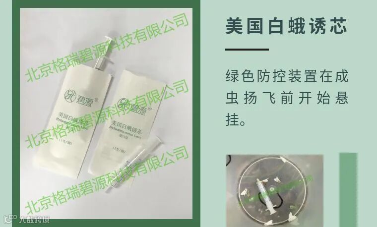 美国白蛾诱芯是以特定的化学成份对美国白蛾成虫有专一诱捕作用为原理,制成的特殊生物引诱制剂,配套诱捕器使用,悬挂至野外,可使美国白蛾成虫聚集过来,掉进放有诱芯的容器内杀灭。此法属于对美国白蛾的生态控制,能够有效干扰美国白蛾交配,诱杀成虫效果明显,可用来监测害虫的发生程度,大面积使用可降低虫口密度。