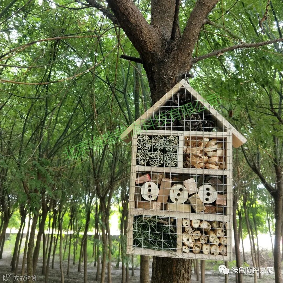 昆虫旅馆是采用自然材料、依照昆虫习性制作,是供虫类繁殖、栖息及越冬的场所。随着农业、林业、园艺的适时发展,响应国家号召,倡导绿色生态,我公司根据昆虫天敌生存习性,模拟其生活环境,利用大自然之物,制作成昆虫小屋,使其成为昆虫小卫士瓢虫、草蛉、步甲、螻螋、引锯蝇、蜜蜂、螳螂、蝴蝶....昆虫的生存、庇护、繁衍场所。一方面节约了资源、保护了环境, 另一方面强化了生态自然性,从而保护昆虫,使其充分发挥以虫治虫的功效。
