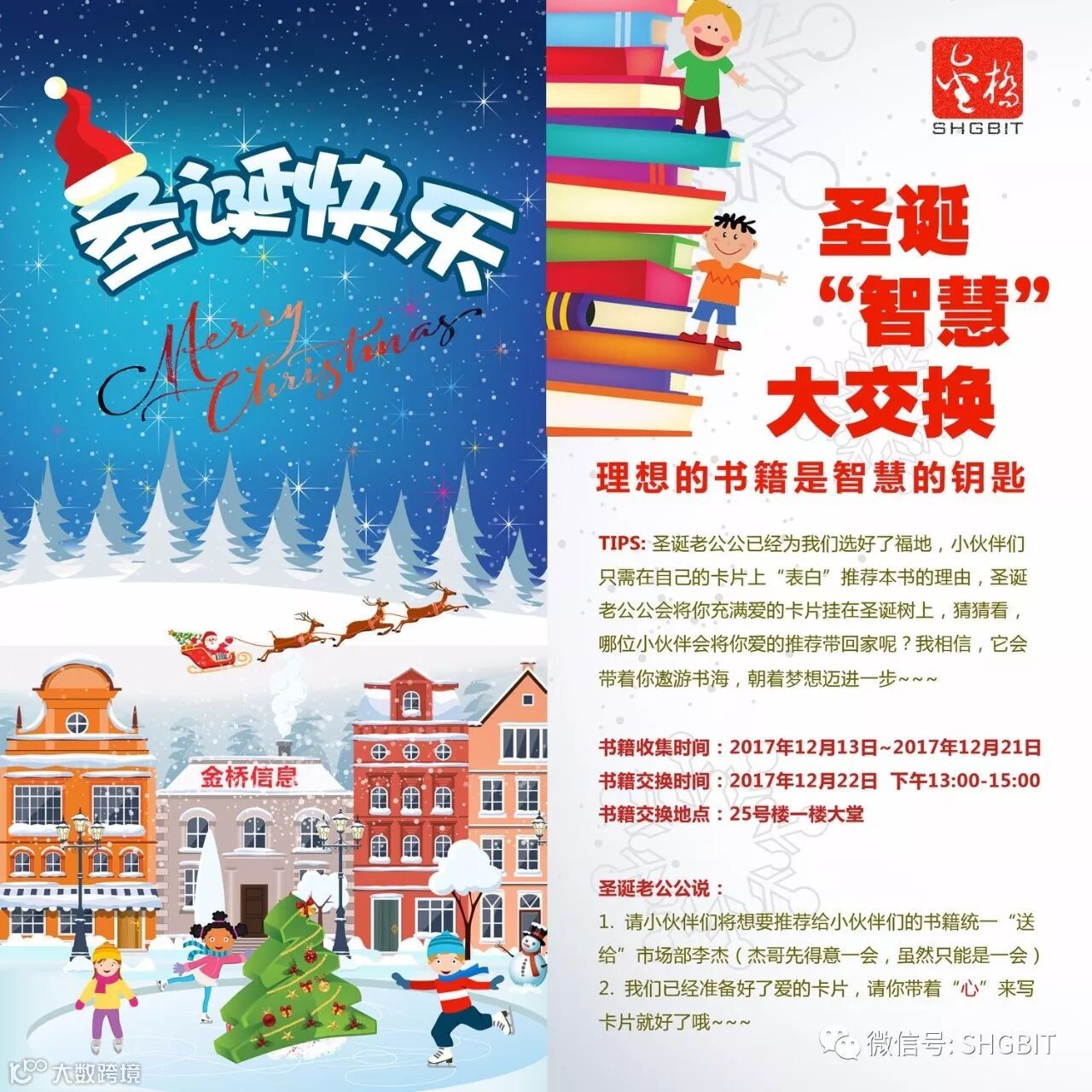 看到没?在金桥,智慧同样可以交换。理想的书籍是开启智慧的钥匙。金桥小伙伴们在一年的辛苦付出之后,想必已经有太多的心得与智慧想要分享,那还等什么呢?“圣诞智慧大交换”嗨起来~~~