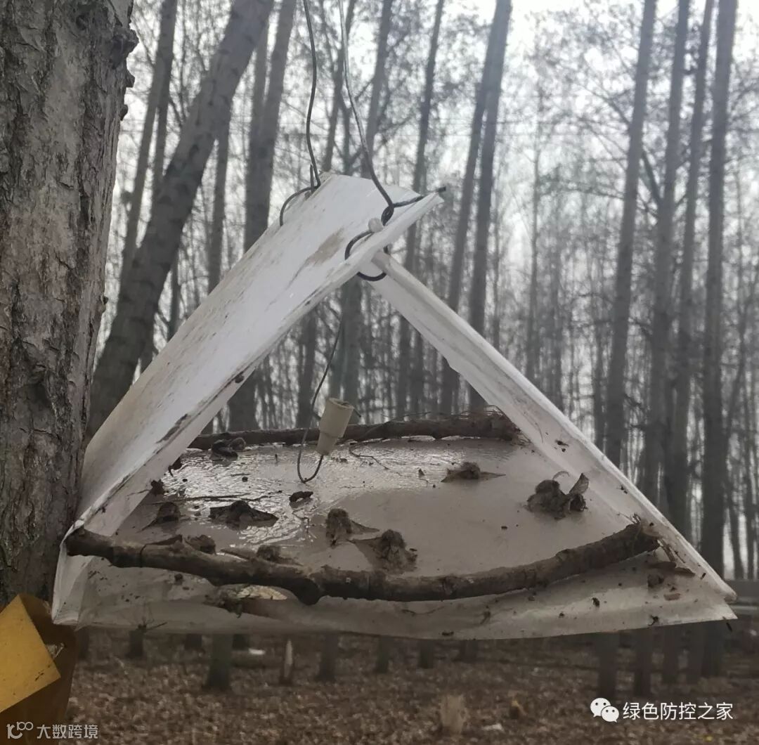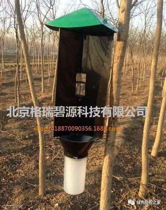 2.使用春尺蠖诱芯和三角形诱捕器,将诱捕器悬挂在离地约1.5m的粗树枝上,诱芯每月更换一次,定时清理害虫。
