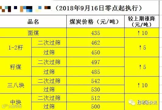新窑煤业:2018年9月12日下午6点中块上调20元,三八块上调10元,二五籽上调10元,一三籽上调5元