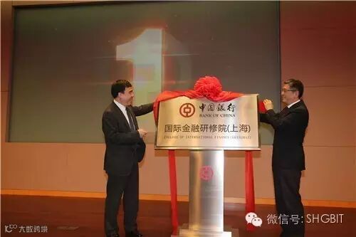 图:上海市委常委、常务副市长屠光绍与中国银行党委书记、董事长田国立共同揭牌