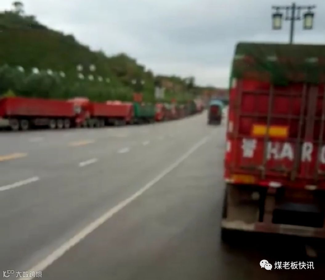 忻州·五保高速公路与岢岚互通交叉口拉煤车呈现‘长龙’拥堵壮观;距离府谷南收费站6.21KM,离石马川收费站3.15KM , 因车流量大,神府高速神木北、永兴、石马川收费入口禁止五轴及以上货车通行。