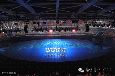 本次青奥会动用了112台巴可HDF系列投影机,要知道这在全世界都是第一次:第一次在体育赛事的开幕式演出中,使用这么多投影机。本次青奥会投影面积超过10,140㎡,投影距离超过120米,画面投影俯角达到30度。这些数字听上去就很厉害吧。