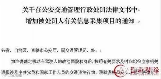 2017年12月18日,公安部交通管理局下发了《关于在公安交通管理行政处罚法律文书中增加被处罚人有关信息采集项目的通知》。