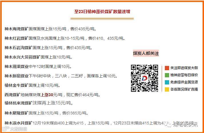 了解更多煤价信息请点击即可查看:☞煤老板网12月23日榆神府蒙最新煤价