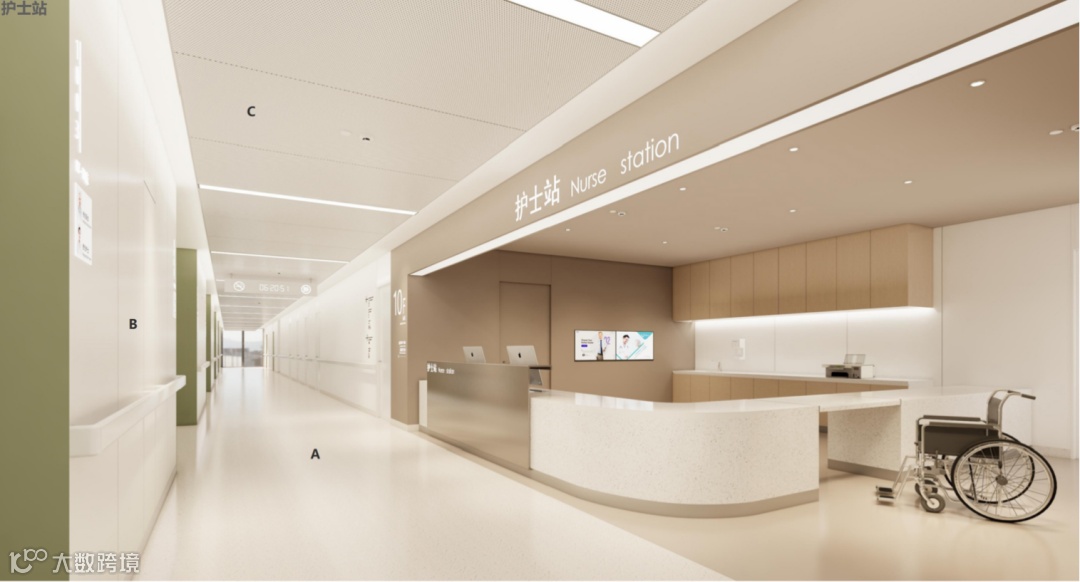 项目以“生命方舟”为核心立意,运用岭南建筑设计精髓,以简洁流畅的线条勾勒出建筑裙房与塔楼的轮廓,形似扬帆远航的方舟,寓意着新校区将乘风破浪、稳健前行。在景观设计上,项目采用形似流水的元素,象征着妇女儿童的温柔港湾,彰显了新校区守护生命、呵护健康的神圣使命,为患者及家属打造一个充满希望与关爱的现代医疗环境。