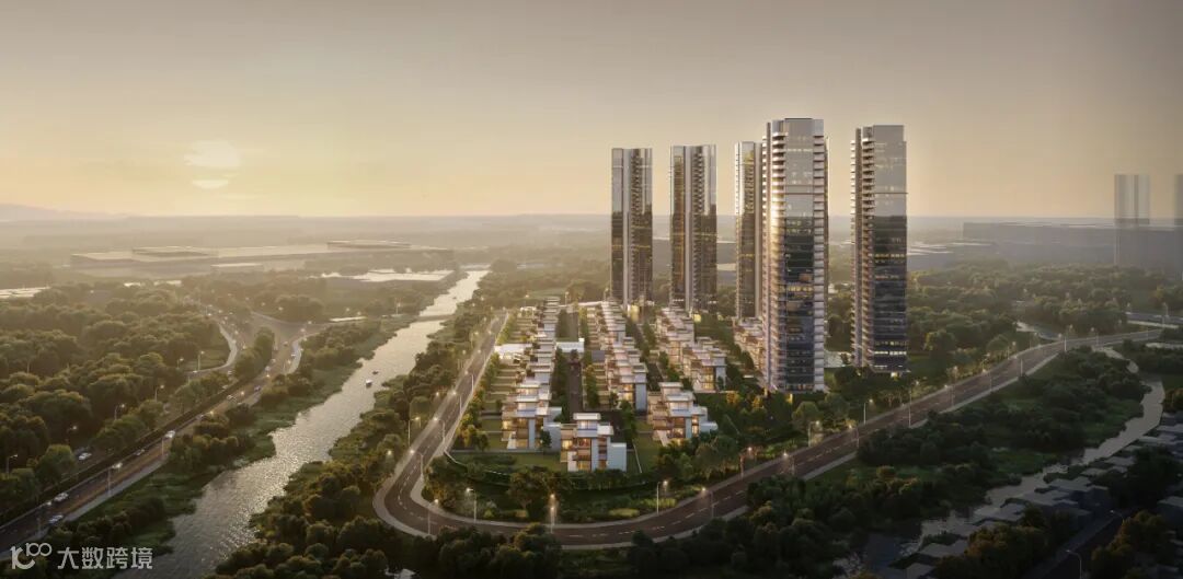 项目致力于构筑兼具卓越品质与优质居住体验的高端居住社区,设计将入口大门、销售中心、下沉式庭院与泳池巧妙融合,共同构成一条景观主轴线。社区内各区域节点特色鲜明,错落布局于自然景观之中,实现了与自然的和谐共生。建筑外立面采用尊贵典雅的新中式风格,与下沉式庭院及周边高层建筑相映成趣。项目坐拥得天独厚的地理位置,紧邻水域、临水观园,其中望江户型占比超92%,让每位住户都能享受宁静壮丽的自然美景。