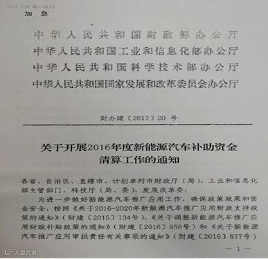 1、新能源汽车补贴清算办法曝光,3万公里对2016年推广车辆也做要求