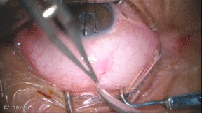 图2 小梁切除术手术中需要制作结膜瓣和巩膜瓣