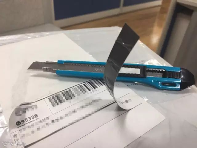 2.对于一些不好撕掉的快递单,我们可以用小刀将其划下来