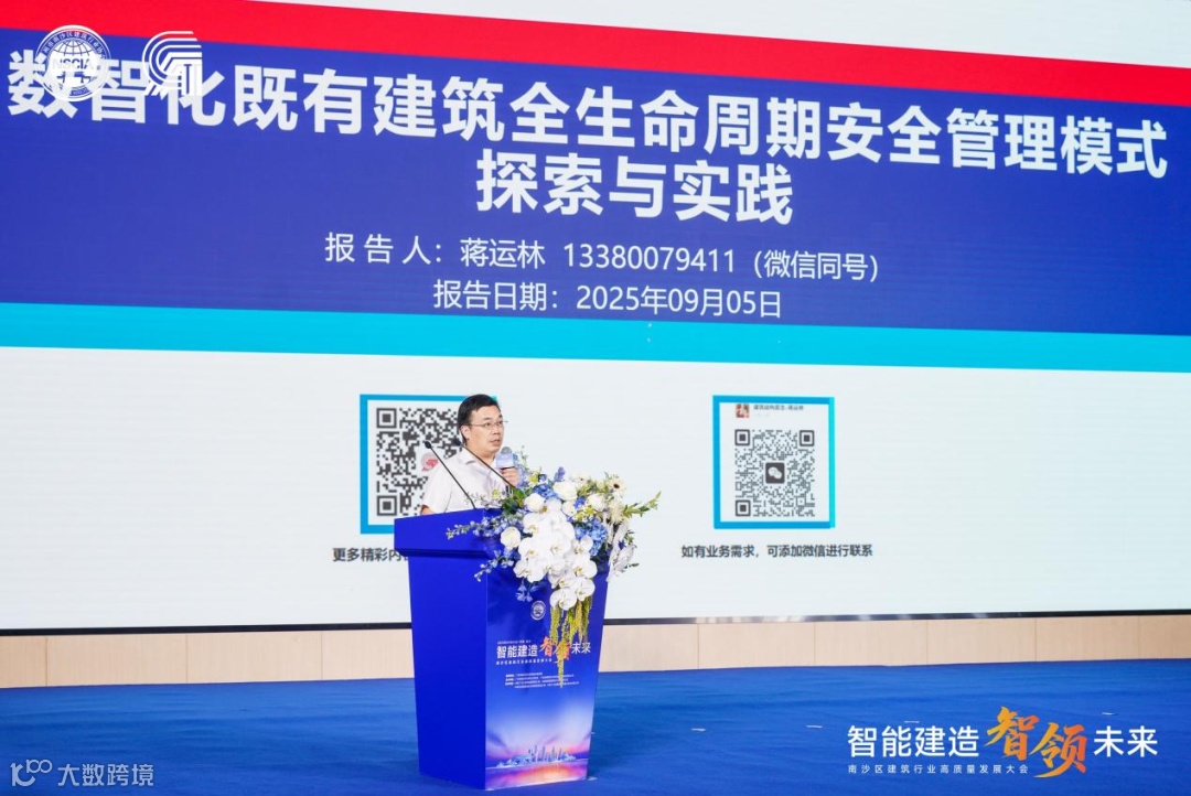 粤建数测公司副总经理蒋运林就“数智化既有建筑全生命周期安全管理模式”作主题演讲。该模式集成人工智能、物联网、大数据与数字孪生技术,推动建筑安全管理由“碎片化”向“全周期”“人工驱动”“智能驱动”转型,显著提升建筑诊治一体化水平。目前,该模式已成功应用于林克明故居、广州