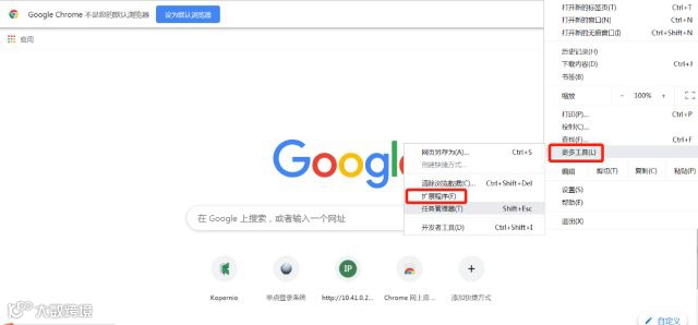 2.打开谷歌浏览器,依次点击浏览器右上角三个点->更多工具->扩展程序,进入扩展程序界面后,直接将插件拖入,系统会自动识别并安装;