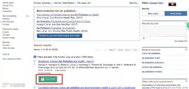 在pubmed中,以检索“air pollution ”为例,安装kopernio插件,前后对比图,如下: