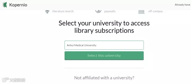 3.安装成功后,根据提示选择您所在的机构并为自己创建一个免费的Kopernio账号;