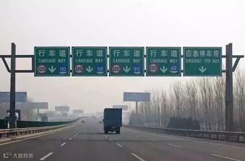 4、车道限速指示牌:通常这牌子都出现在高速车道上方,有限速提示、车道名称和限制车辆等信息。注意上面写的车速哦,不然快了慢了被拍了就不好了~