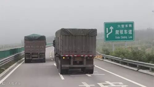 3、爬坡车道提示牌:有下坡就有上坡,这车道是专为大型货车准备的,由于大车的载重量很大,爬坡时会影响其它车辆正常通行,所以爬坡车道内不可随意停车。