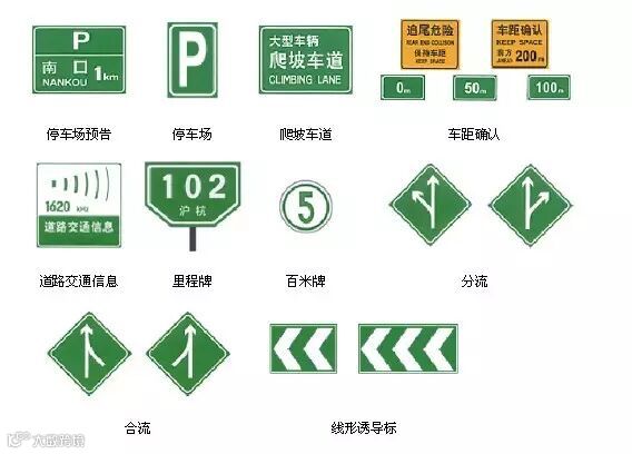 1.隧道指示牌:行驶到山路地区时,会出现隧道,往往隧道口会看到隧道名称,隧道长度等。