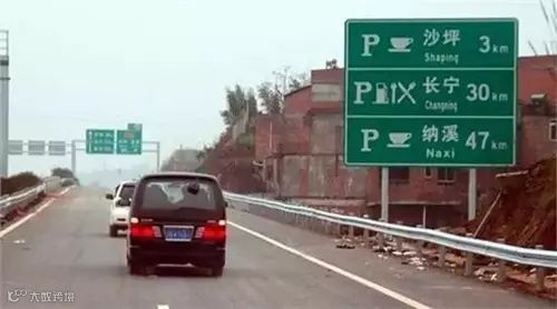 2、服务区指示牌:这些牌子在卡车司机眼中都是非常重要的!因为这里可以让你解决内急、肚子饿和车没油等问题~服务区标识是大写字母P,配合着加油机、刀叉及扳手图案,分别对应加油站、用餐、修车等服务功能。