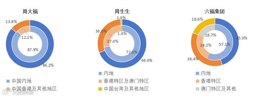 2022-2023财年得益于香港特区本地旅游经济的恢复及珠宝零售业的强劲复苏,3家企业在香港特区及澳门特区收入占比均有所增高。