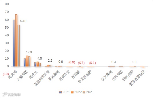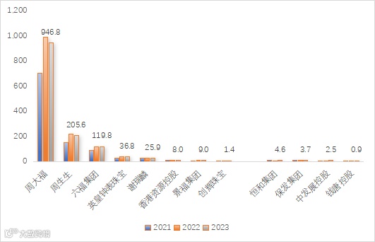 图10 2021财年-2023财年港股珠宝上市公司营业收入(亿港元)