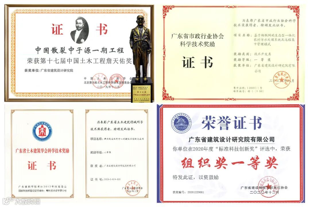 在机场航站楼设计(如广州白云机场、深圳宝安机场卫星厅、揭阳潮汕机场、珠海机场、湛江机场等省内主要机场航站楼)、市政环保(如广州西江、北江引水工程;大坦沙、石井河污水处理系统;广州兴丰、潮州锡岗垃圾填埋场;湛江EOD、江门应急水源PPP、粤东西北新一轮污水处理基础设施方案实施等;揭阳榕江国考断面达标攻坚等水环境治理工程全过程咨询项目;农村供水、污水科技研发及成果产品应用)等领域打造了一批行业精品,并拥有一批具有自主知识产权、达到国内先进水平以上的技术成果。