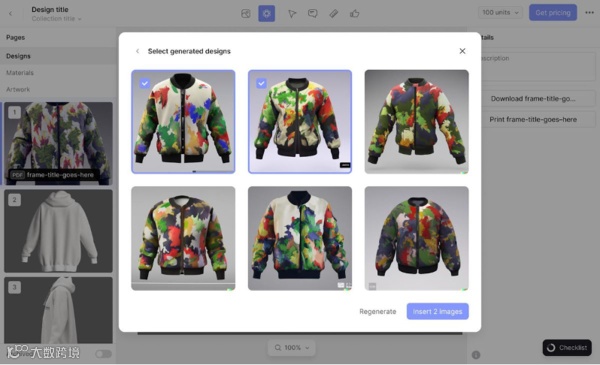 在时装行业,目前已出现可将设计师的文字创意快速转化为设计草图的AI平台。用户可以从 T 恤、帽衫、大衣、鞋履等几十种产品类别中先选择一个基础模板,然后在文本框中输入形容词来描述你想要的外观设计,比如材质、细节、印花、颜色、版型等等,AI将根据用户描述完成设计并输出几种近似结果。