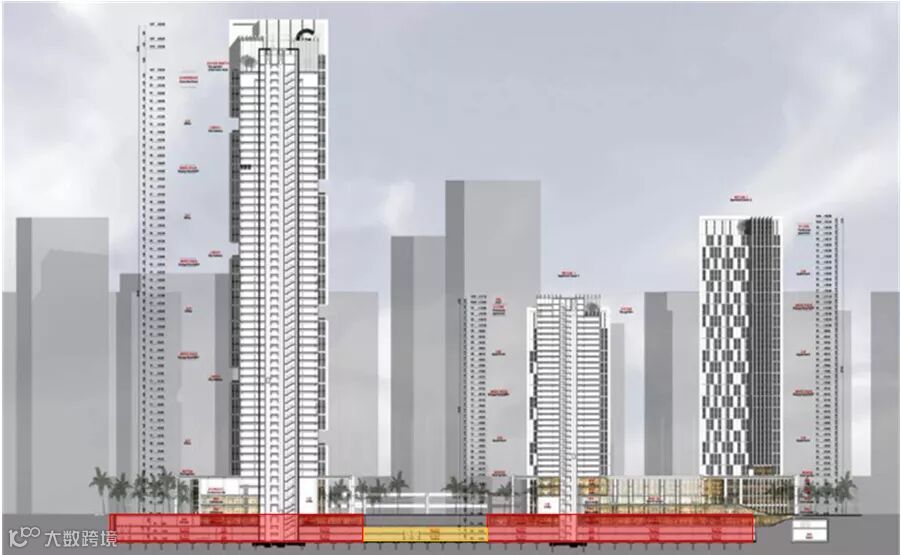 通过专家论证,在市政道路及河涌下方设置地下空间连通A、B区两个地块。既保证了未来市政隧道的预留,又满足了停车指标而不至于增加地下室层数,并且运用整体基坑做法,大大给业主节省了建设成本。