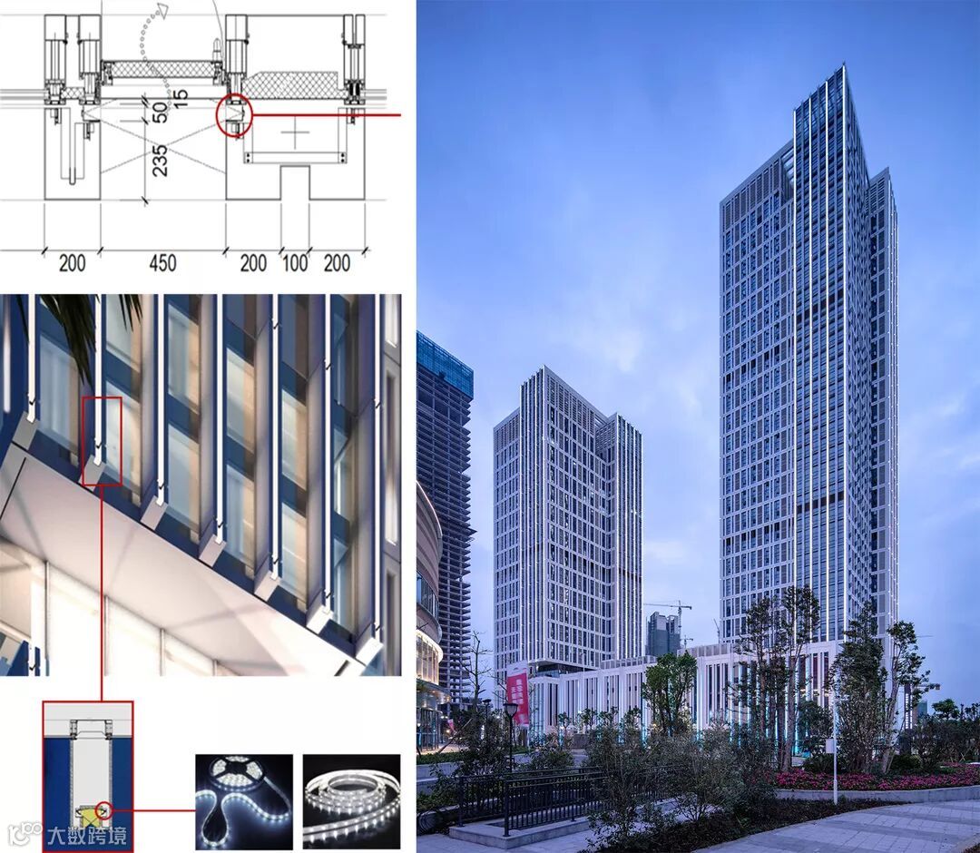 3.泛光使用隐藏式设计,与幕墙巧妙结合,即经济又美观。
