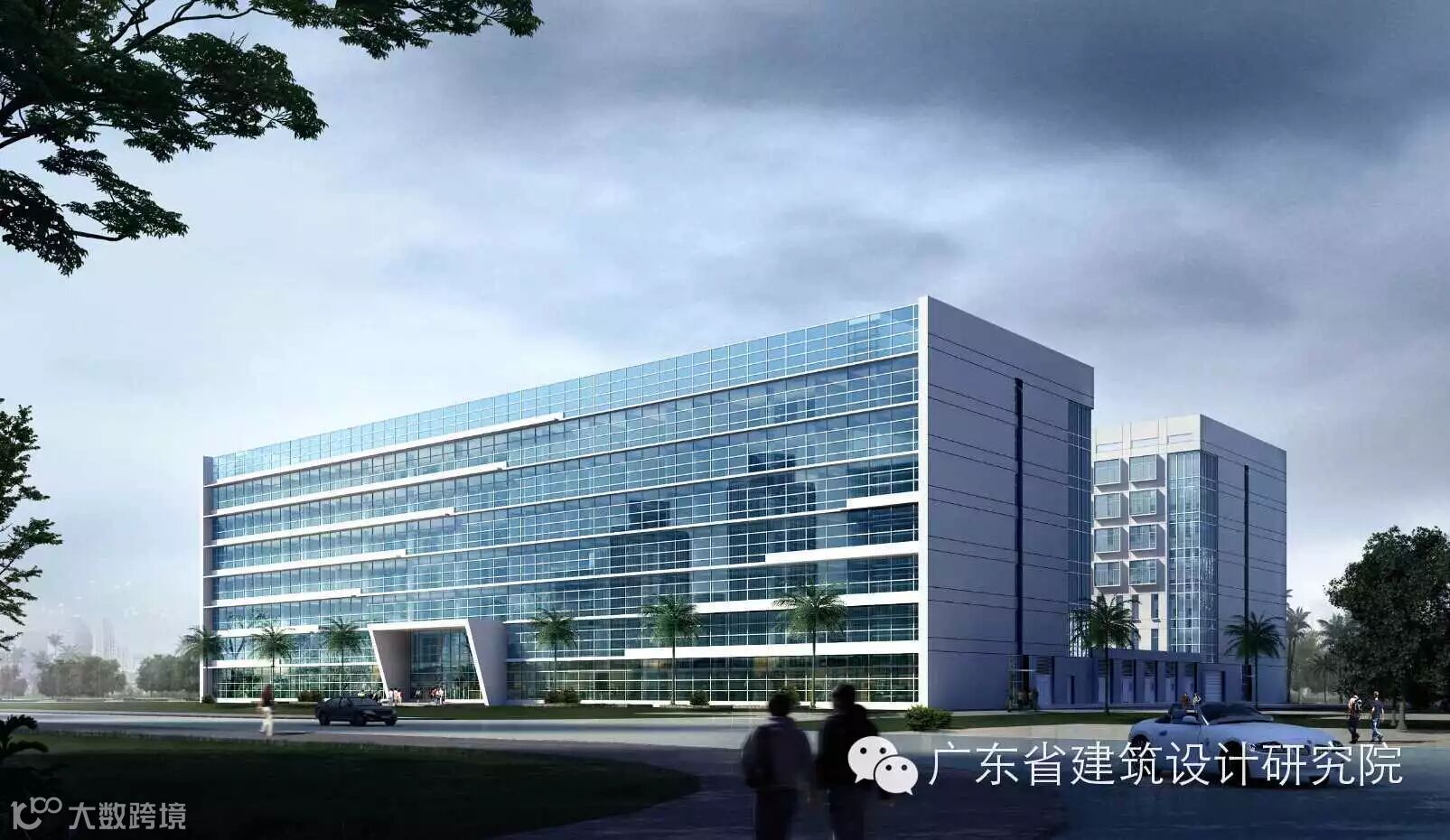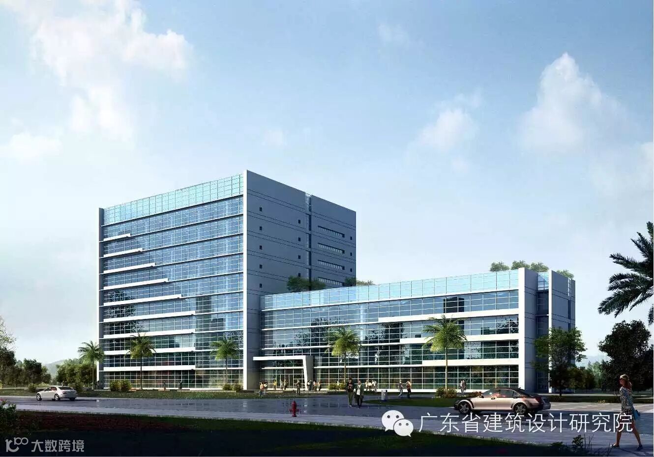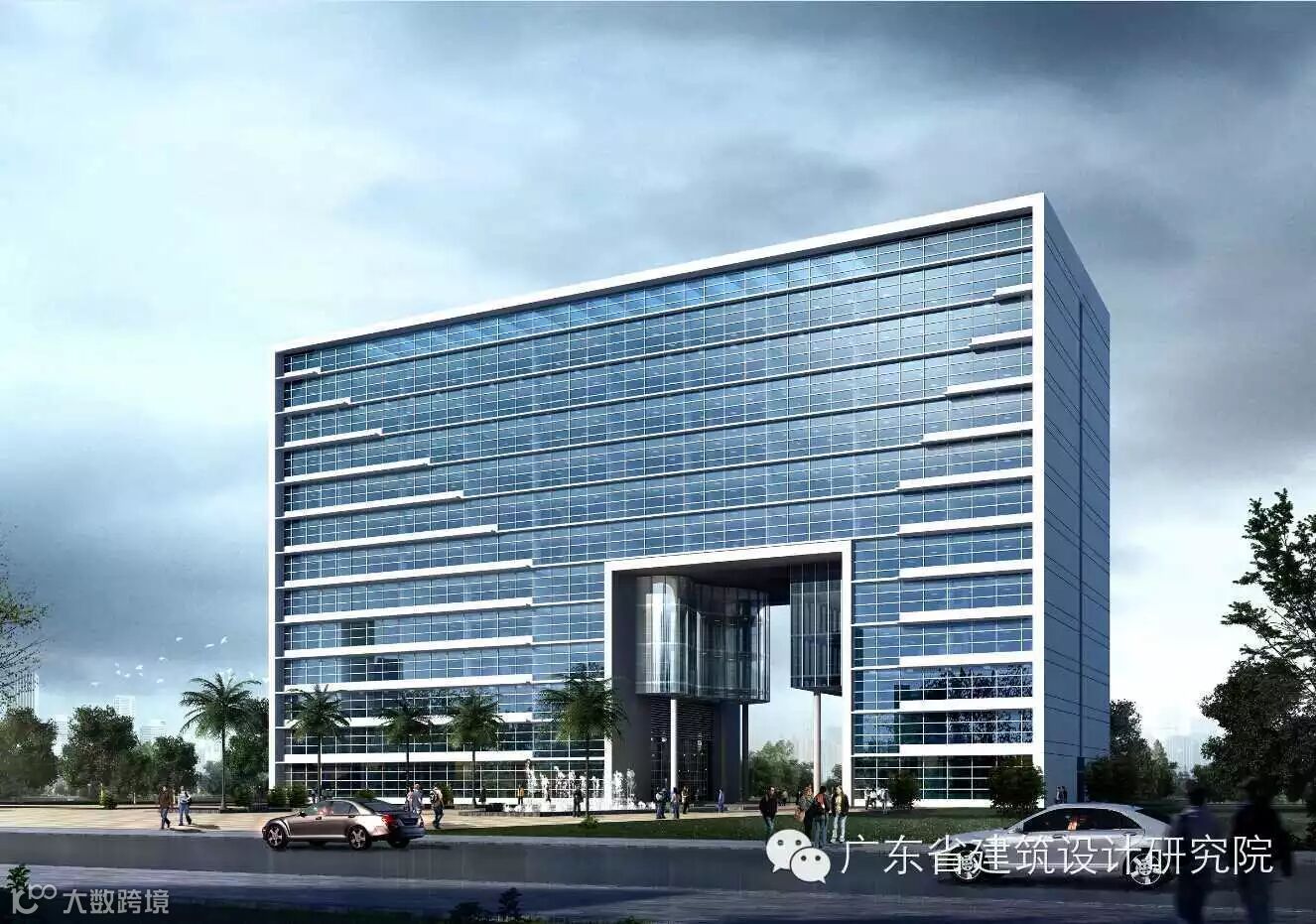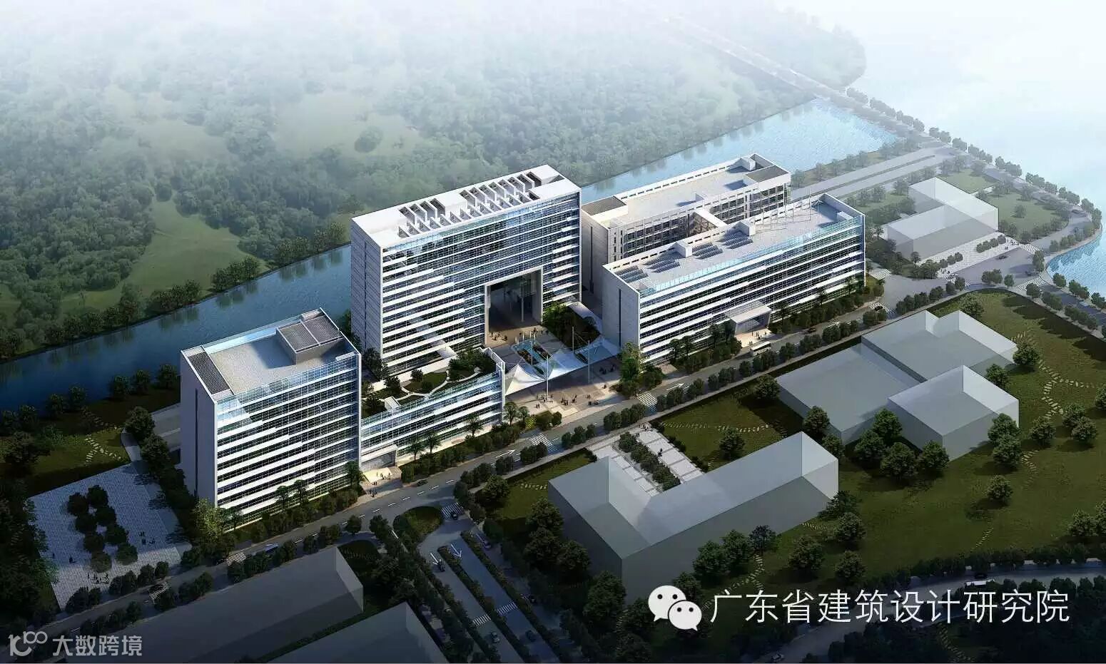 造型上开放实验室大楼采用中部掏空的“门”字体型,在校区中轴线上留出视线通廊,可直望对海澳门岛。两侧实验楼采取规整的体型,满足实验室的使用功能。形象大方,作为整个校区的背景,相映得彰。