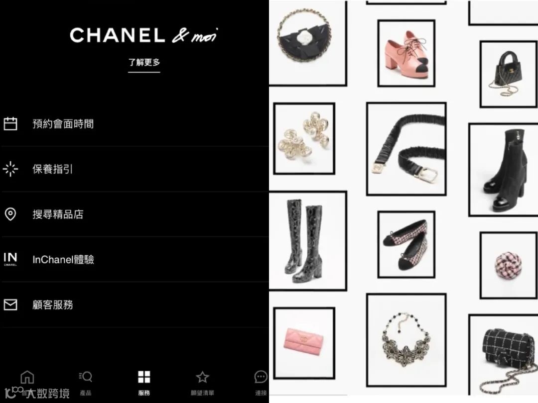 Chanel已在部分地区推出智能APP InChanel,仅限已有品牌账户的客人注册使用。除门店预约功能外,该智能APP会根据账户等级解锁不同商品,普通用户可以看到约20条新品信息,VIC则可以看到超50条新品信息,且品类更全,未来还会上线AI搭配筛选功能。