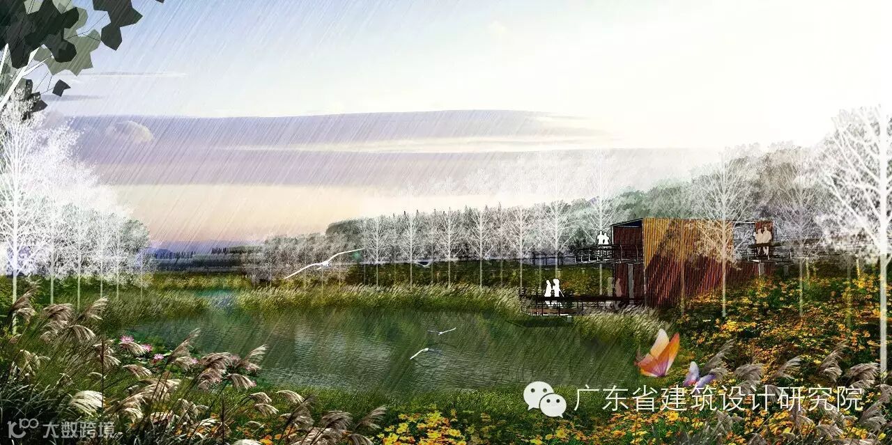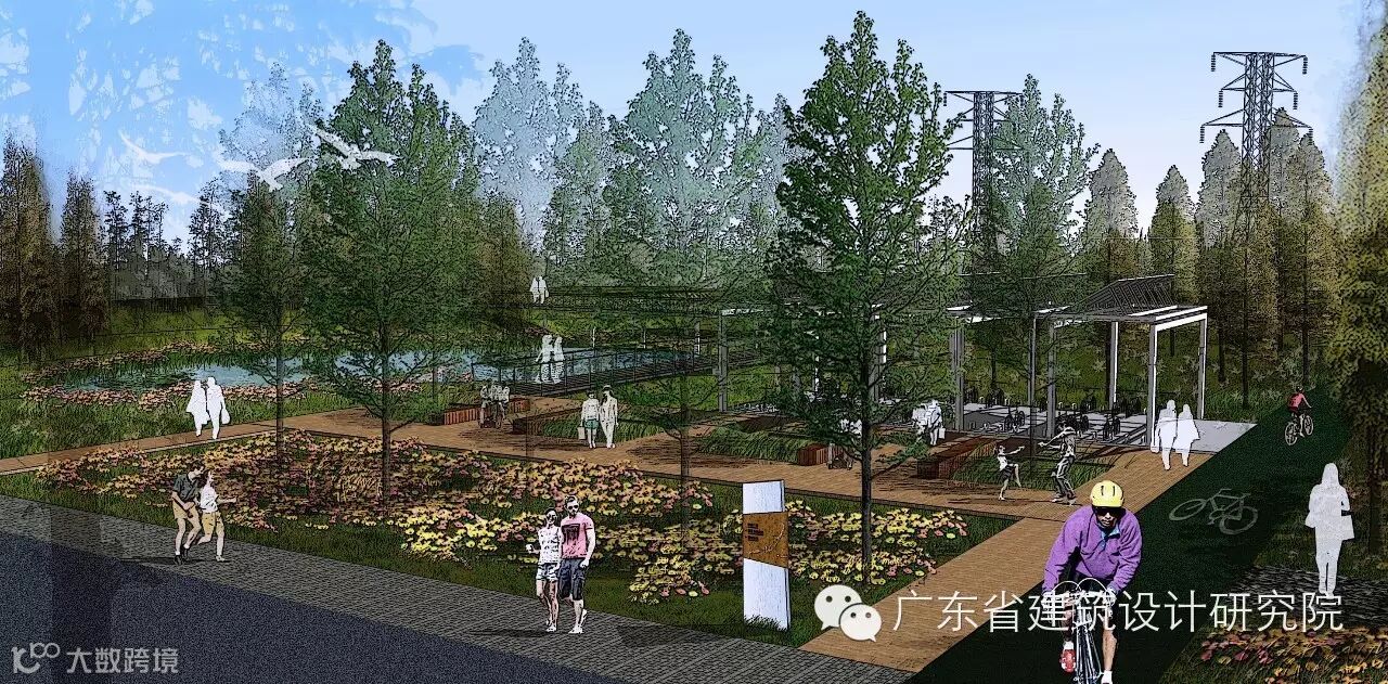 设计方案的总体结构可以概括为“一核两翼”,“一核”是指新塘水库,“两翼”即新塘水库上下游的两条谷地,三个区域以一条舒适的自行车道相联系。