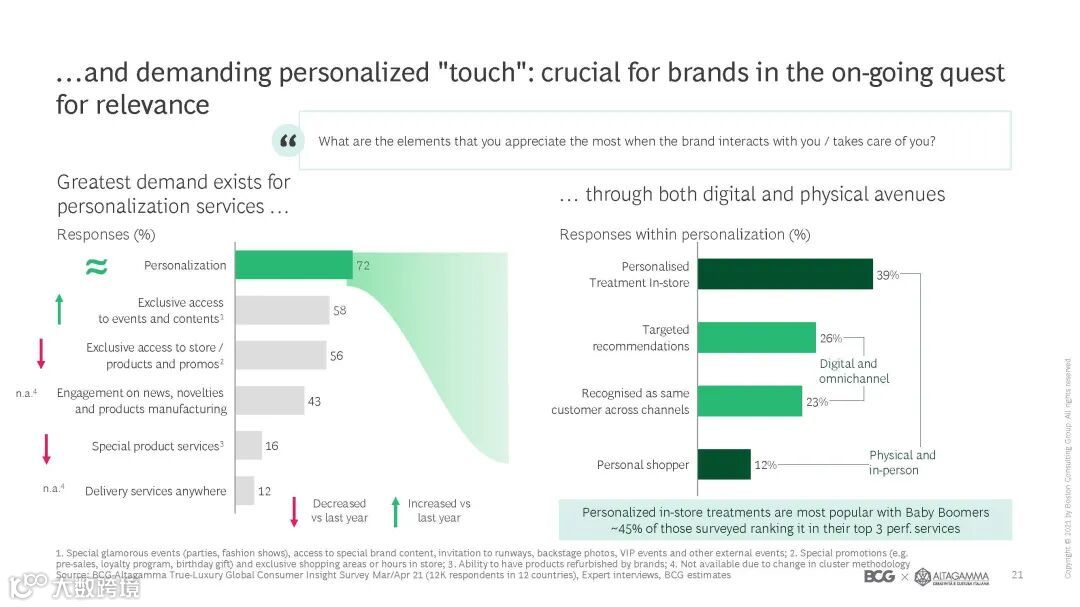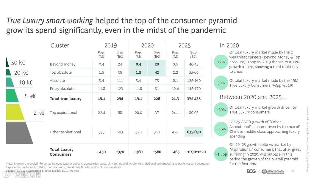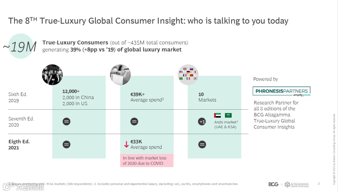 该报告由BCG和ALTAGAMMA共同完成,ALTAGAMMA是意大利奢侈品品牌委员会,其合作伙伴有GUCCI、宝格丽、Tiffany和Prada等品牌。