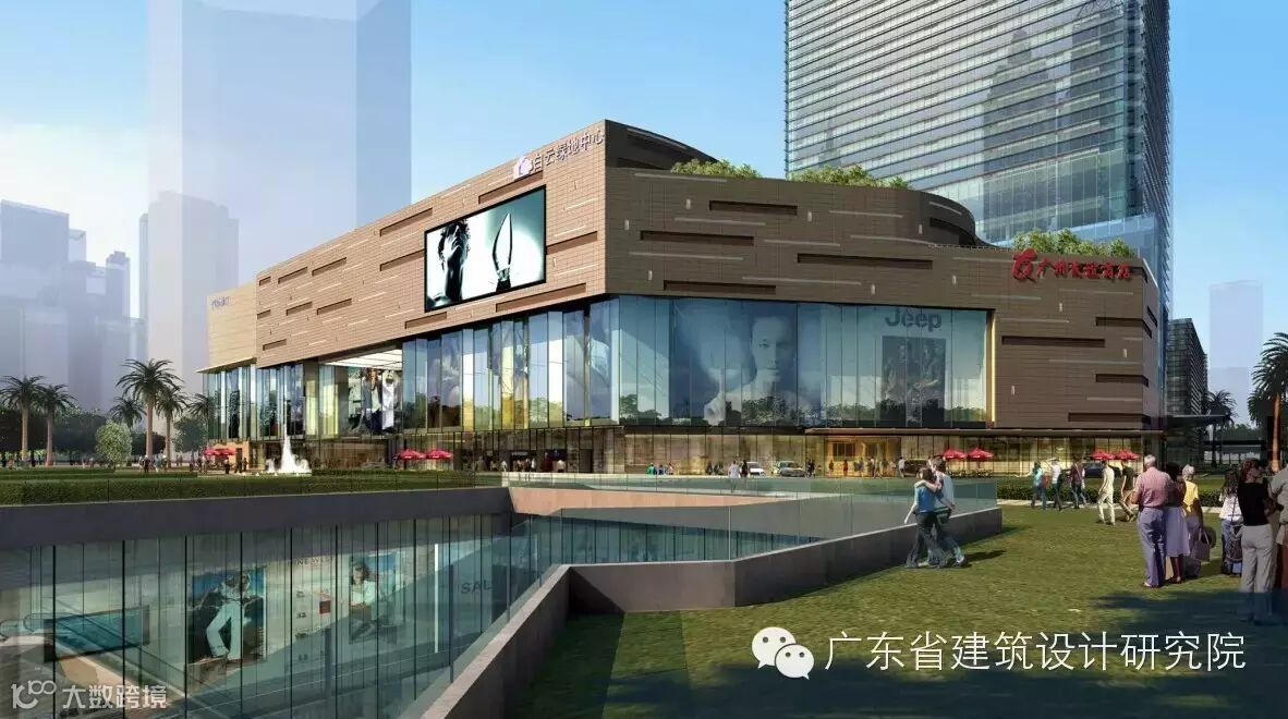 项目将骑楼、都市广场、生态环境三大主题融为一体,展示出广州新型城市化的建设理念。骑楼的长廊吸引人流通过,下沉式地下广场与商业空间融合,收容大量人群并引导分散他们,多层次立体绿化柔和了建筑立面的同时,为城市带来的新鲜的空气。