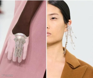 近日,LVMH集团旗下品牌Fendi在高级定制时装秀上发布了首个高级珠宝系列“Fendi Flavus”,由品牌珠宝艺术总监Delfina Delettrez Fend设计。该套产品融入了Fendi经典logo,镶有1000多颗黄钻及白钻,包括项链、耳环和鸡尾酒戒指等单品。