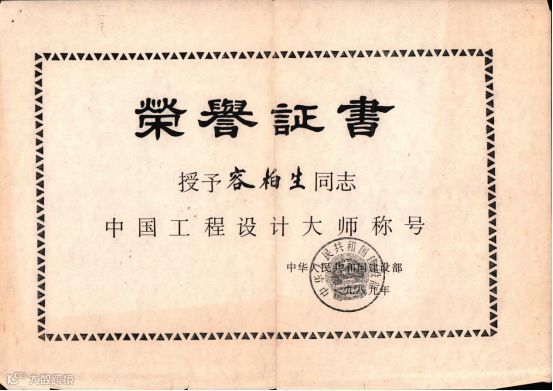 中国工程设计大师荣誉证书