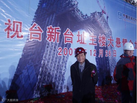 2007年,容总在央视大楼悬臂合拢仪式上