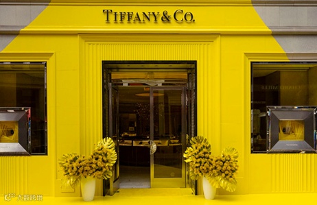 令所有人出乎意料的是,5月Tiffany在其洛杉矶比弗利山庄专卖店内开设了一家黄色快闪店,曾经经典的“蒂芙尼蓝”店面被黄色装潢一新,延续着愚人节以来跳脱古怪的风格。