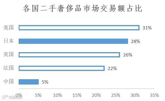 经过多年的经济发展,中国已经成为世界最重要的奢侈品消费市场之一,民间存在着巨大的“奢侈品沉淀池”,但在“二次流通”环节活力不足,二手交易额仅为总交易额的5%左右,较欧美、日本等发达国家市场的20%~30%的水平有着极大的提升空间。