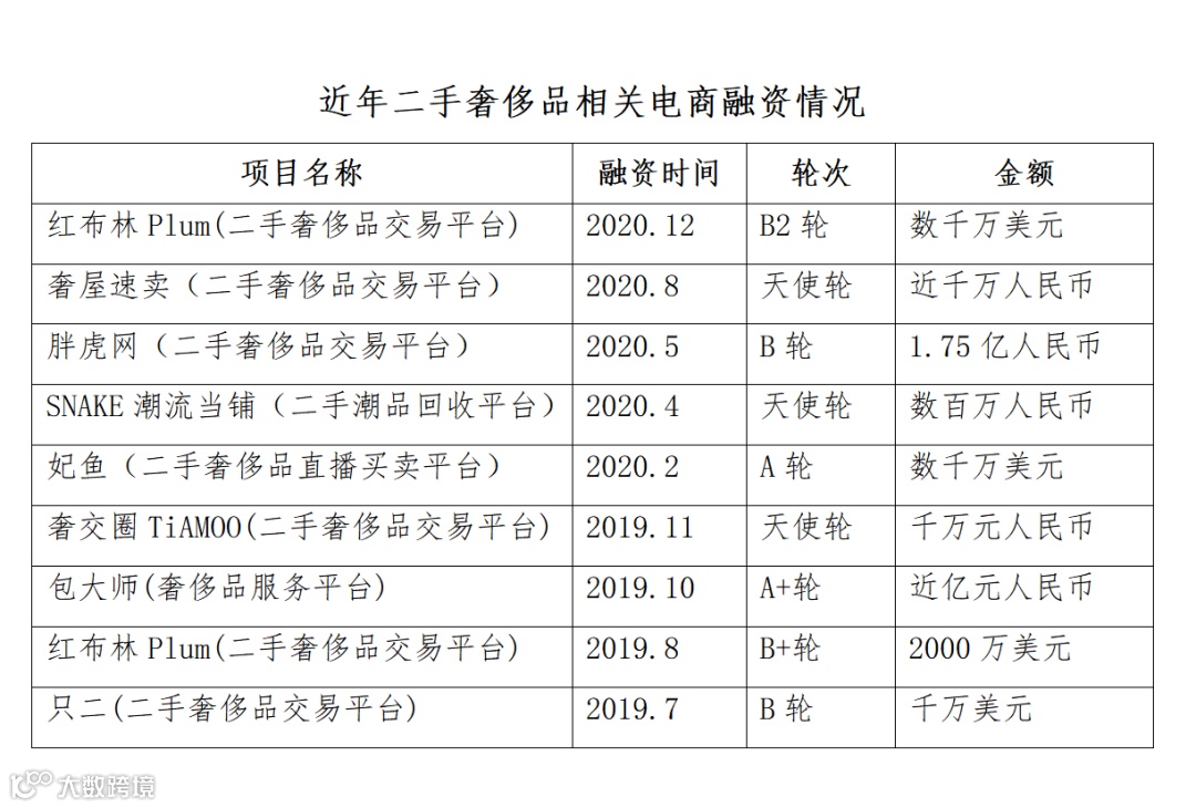 市场井喷式增长前,许多资本已提前布局。如下表所示,近年来国内已有多个二手奢侈品交易/服务平台获得千万级以上融资,足以证明奢侈品市场已处于新平台崛起的窗口期。