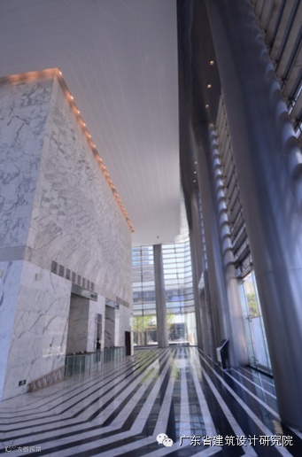 设计中充分利用办文中心主楼4层高的公共大厅、连接办文中心主楼和出租塔楼之间的休闲区。
