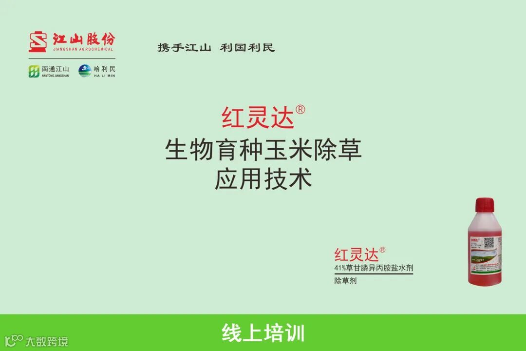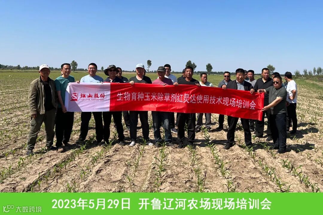自2021年我国启动生物育种产业化科研试点以来,南通江山全程、全面参与,技术服务及产品品质得到验证。2023年试点范围扩大至5省20县,南通江山各县均投入驻点人员,通过“室内理论培训+田间用药指导”等模式现场培训500余场次,线上培训辐射50000+人次;通过季节前“大棚+盆栽”试验验证,增强农户对生物育种作物的认知和使用草甘膦的信心;通过从种到收的全程技术服务,使终端用户从“不能用、不敢用”到“科学认知、规范用药”。2023年红灵达®在生物育种作物田试点示范500000亩,占试点总可使用草甘膦除草剂面积的60%以上,超10000个农户累计使用口碑,用户的认可和满意是产品质量的最佳衡量标准!