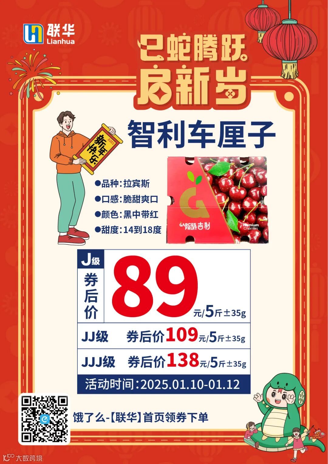 买买买!J级智利车厘子5斤到手价89元!