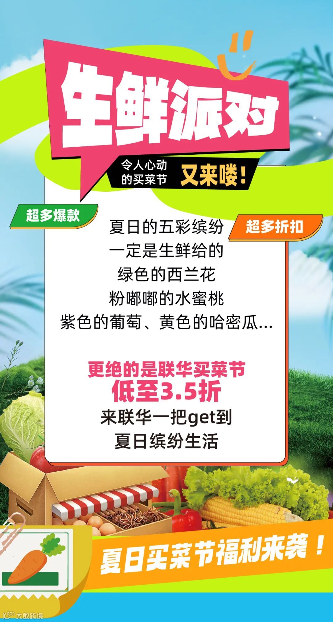 导读:联华酷暑夏日买菜节超多生鲜折扣巨巨巨划算!快来抢购吧~