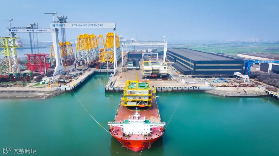此次发运的海上升压站堪称海上 “巨无霸”,其上部结构单体重量约达 2350 吨,高度堪比 8 层居民楼。这样庞大的体量,不仅是海上风电工程难度的体现,更是天顺风能在大型海工项目建造领域实力的有力证明。