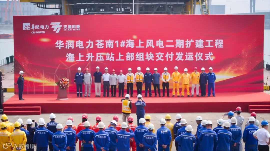 7 月 14 日,由天顺风能承建的华润电力苍南1# 扩建工程海上升压站正式发运,这一重要时刻标志着该项目又迈向新的阶段。作为海上风场的核心组成部分,海上升压站承载着风机汇流输电的重任,其顺利发运为项目后续推进提供了关键支撑。